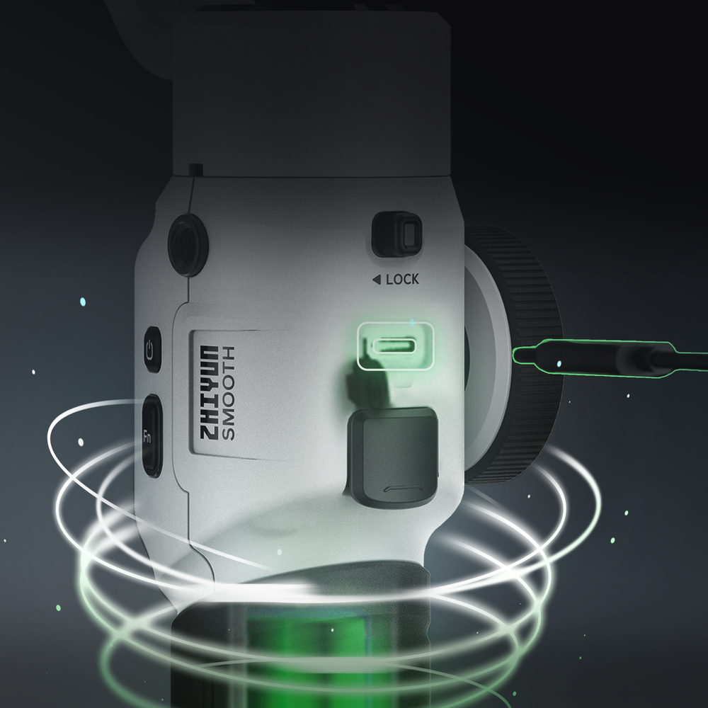 • Smooth 5S stands out with its professional structure of 3 orthogonal pivot axes that bring you more possibilities with greater vision. The wider space between each axis facilitates extreme-angel shootings, allowing you to make cinematic shots without limits